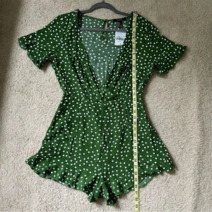 2/$25 H&M Green Polka Dot Romper Playsuit Medium Short Flutter Sleeve Deep VNeck