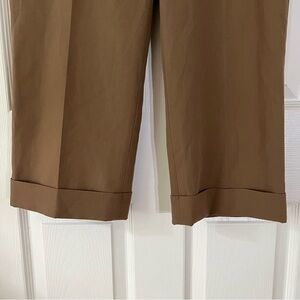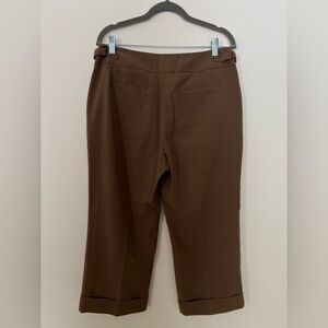 Larry Levine Womens Capri 10 Brown High Waist w/ Sides Buckle Wide Leg Cropped Loose Pants Cuffed Hem