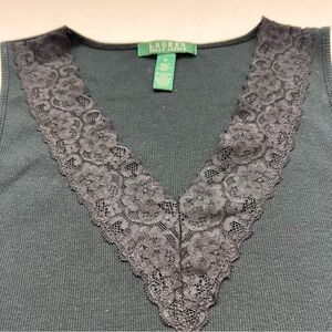 2/25 Lauren Ralph Lauren Black Lace v neck tank top sleeveless 90s vibes m