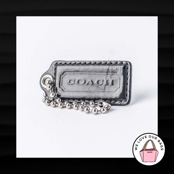 2.25" Medium COACH DARK GRAY PATENT LEATHER KEY FOB BAG CHARM KEYCHAIN HANG TAG