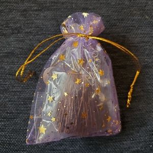 Hand twined with metallic purple thread and ornamented with purple crystal quartz, silver star charm, purple crystal bauble, and a silver moon. Includes elastic cord to hang from a door, mirror, handle or tree. Packaged in a purple organza bag, perfect for gift giving.