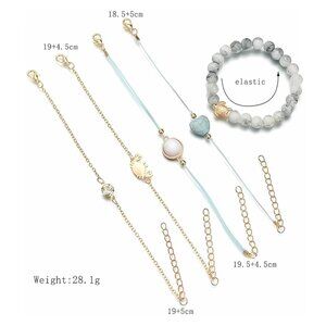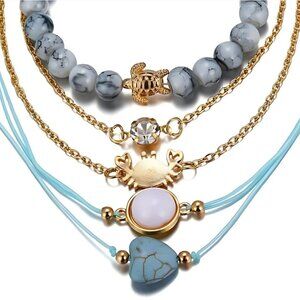 🍒2/$25 NATURAL Stone Charm 🦀 Crab Turntle Heart CZ Pendant Bracelet Set of 5