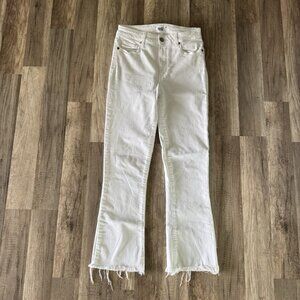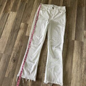 $225 Paige Women's White High Waist Raw Hem Flare Leg Denim Jeans Pants Size 28