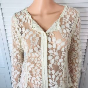 Details: Beautiful lace see through button down blouse by Rachel Roy