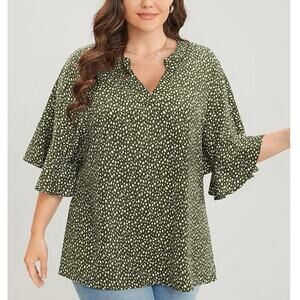 2/$25 Size 12 • Large • BloomChic • Leopard Print V Neck Ruffle Sleeve Blouse