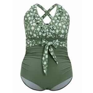 Season:Summer Color:Mint,Rouge,Lightblue,Black Style:Vacation Bra Type:Wireless Coverage:Full Neckline:V Neck Sleeve Type:Sleeveless Pattern Type:Ditsy Floral Details:Ruffles,Knotted,Patchwork,Printed,Gathered,Tummy Control,Adjustable Straps Pocket:No-Pocket Belt:No-Belt Chest Pad:Removable Padding Lining:Lining