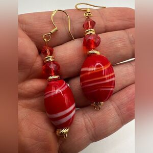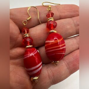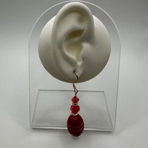2.25" Stunning Red Glass, faceted glass, and crystal beaded dangle earrings!