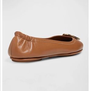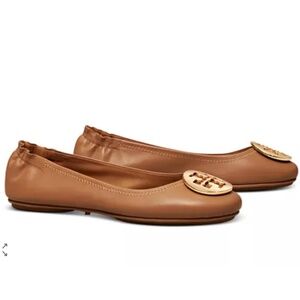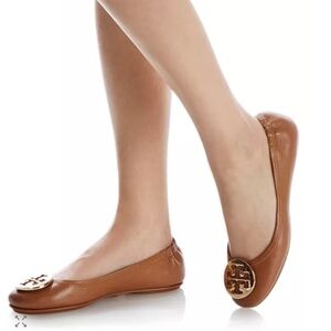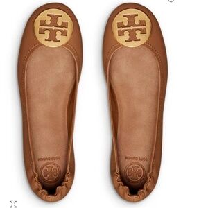$225 TORY BURCH Mini Travel Ballet Flats in Royal Tan/Gold EUC/sz 9.5