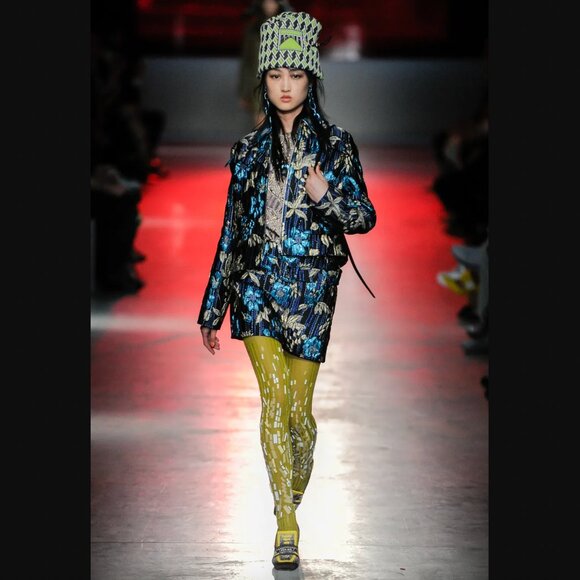 $2250 PRADA 2018 Black Embroidered Silk Floral Brocade Zip Ruffle Jacket IT 38/2
