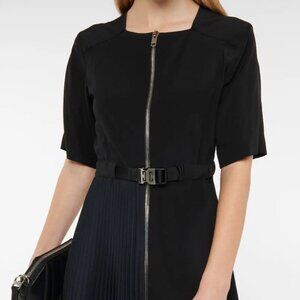 $2255 NWT Givenchy Black SS Zip Front Pleated Silk Midi Dress size 8/FR 40