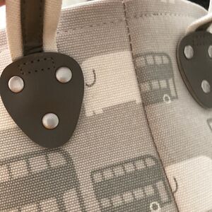 Gray elephant basket, storage, has handles, small, marks on interior as pictured, like 2 items marked 2/25$ and i will send you an offer