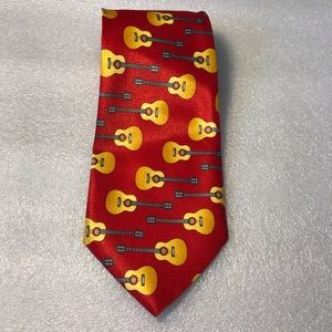 Men's Tie by Bass Birdie. Colors: red and gold. Pattern and theme: guitars. 100% polyester- handmade. This is a tickler listing as this item will be listed in my upcoming LIVE SHOW tray. Join me at the next Live Show to learn more details about this item. The next live show will include low start prices, dresses, tops, pants, and miscellaneous. Please note, you can buy this now, like it, or send me an offer before my next live show, if you like! Ask me any questions in the listing comments. Thank you! Check out my live show listings tray anytime before and during the show. Buy! Like! Offer! Happy Poshing!! Necktie neck wear wardrobe musical string work business interview play evening outings gifts events wedding