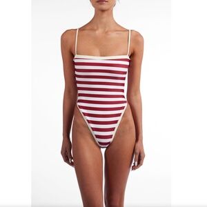 227. SAME Los Angeles COLORBLOCK ONE PIECE Burgundy Stripe Red $250 NWOT Medium