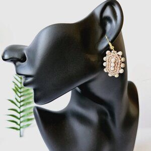 2/$27 | Tan Stone Shield Beaded Indigenous Hoop Earrings | Handmade