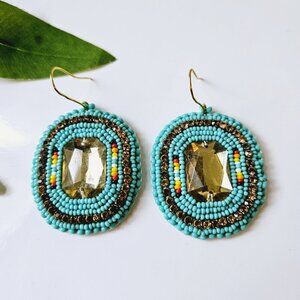 2/$27 | Turquoise Sparkle Shield Beaded Indigenous Hoop Earrings | Handmade