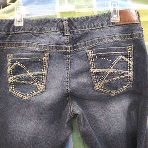 2274 Jeaniemade Size 11/12 Maurices Stretch Bell-Bottoms. Waist 17.5" inseam 28" rise 9". These jeans have a raw hem.