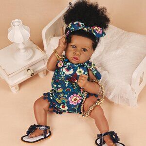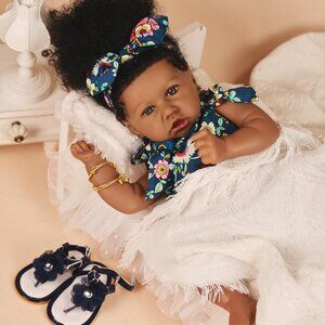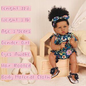 🆕22.8 Inch Reborn Doll with Soft Cloth Body African American Natalie Girl Doll