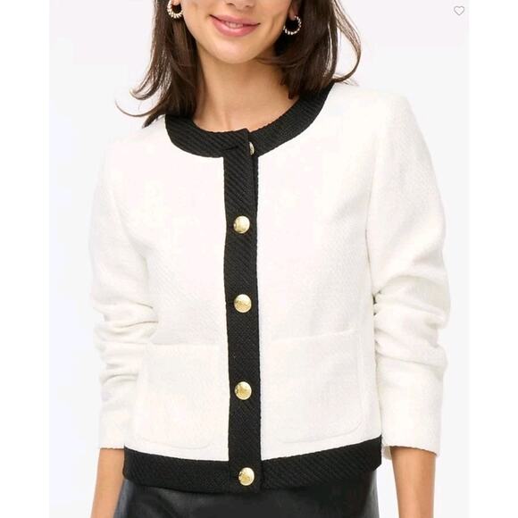 $228 J.Crew Tweed Lady Jacket Womens 12 Black White Preppy Blazer Gold Crested