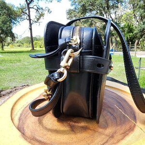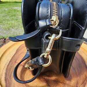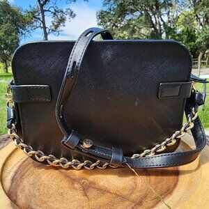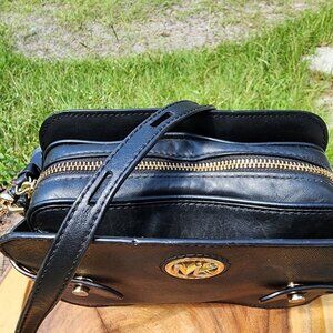 $228 Michael Kors Carmen Camera Saffiano Leather Crossbody Bag Black Gold Chain