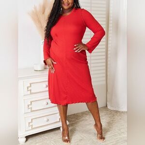 🎈2/$28🎈Red Cotton Blend Midi Dress Long Sleeve Curvy Stretch sz M