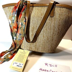 $229 ⭐️ NEW Patricia Nash Marconia Tote Burnished Woven w Apricot Blossoms Scarf