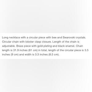 $229 New In Box Elie Top x Zara Limited Edition Bee Necklace