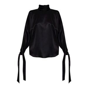 $2290 New SAINT LAURENT Gathered Turtleneck Silk Blouse Womens 42 Black Italy.
