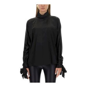 $2290 New SAINT LAURENT Gathered Turtleneck Silk Blouse Womens 42 Black Italy