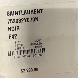 The product is a $2290 Saint Laurent GATHERED TURTLENECK SILK BLOUSE in size 42, designed for women in a sleek black color. Made in Italy, this blouse features a turtleneck neckline, showcasing the brand's attention to detail and quality craftsmanship. Perfect for those who appreciate luxury fashion, this blouse is a versatile piece that can elevate any outfit with its designer brand and exquisite material.