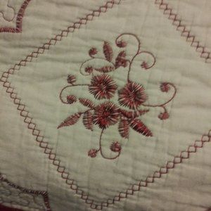 2296 Red & White Embroidered Throw or Wall Hanging, 49.5" X 59.5" with a loop sewn on for hanging.