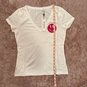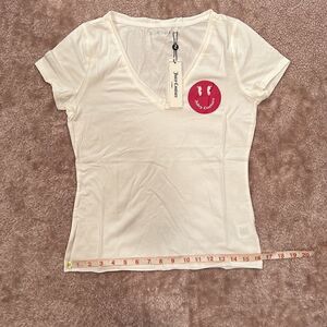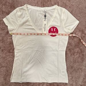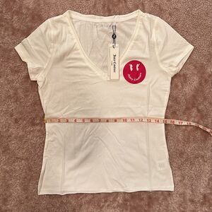22. NWT Juicy Couture Smiley Face Emoji Cotton Modal V-Neck Tee White Women's S