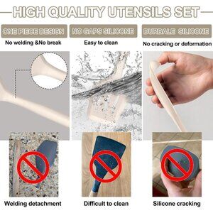 Each cooking utensils has a stainless-steel core to ensure long-term deformation and durability. Soft silicone outer layer will not scratch your pan, At the same time, the silicone with a fine particle feel is also anti slip, providing you with a comfortable grip. The stainless steel is wrapped in silicone to form a whole seamless silicone design, You don't need to worry about cleaning issues caused by any welding seams