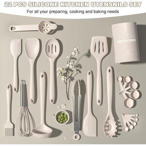 22Pcs Heat Resistant Utensils Spatula Spoon Whisk Dishwasher Safe Kitchen