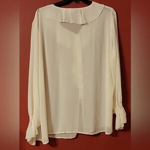 Offered is a stunning Ivory sheer chiffon button up blouse. A romantic series of ruffles & pleats make this soft and flowing. Plus size 22W, Liz Claiborne woman. New without tags and in immaculate condition.