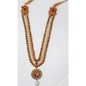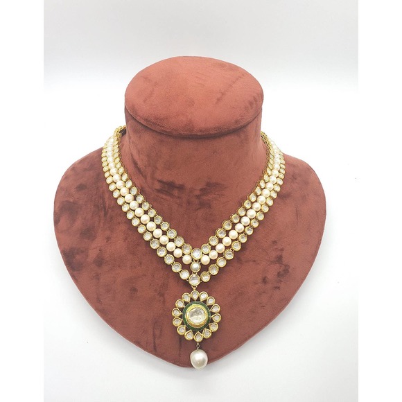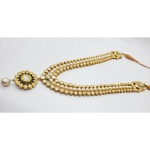 22kt Kundan Necklace with Hand Painting Enamel in the Backside , set in UnCut Diamond (POLKI) and South Sea Pearls String From Hyderabad India.