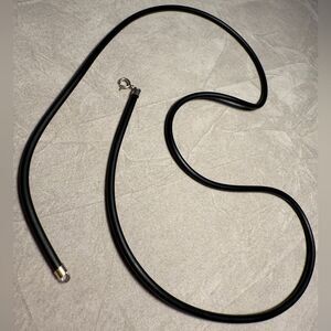 Sleek, simple, and stylish - this unisex cord necklace is crafted from flexible black rubber-like material, ideal for showcasing your favorite pendants or charms. The minimalist design is complemented by a secure .925 sterling silver clasp, adding a touch of sophistication.