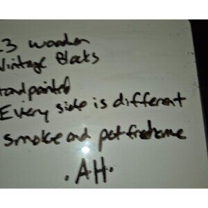 Handcrafted wooden blocks featuring vibrant numbers, letters, and images. Each side showcases unique characters or designs. Smoke-free and pet-free home.