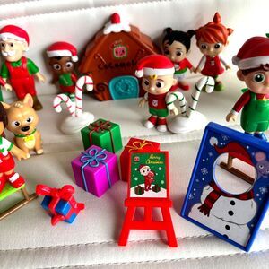 23 Piece Christmas COCOMELON Play Set 9 Family & Friends Figures &14 Play Pcs.