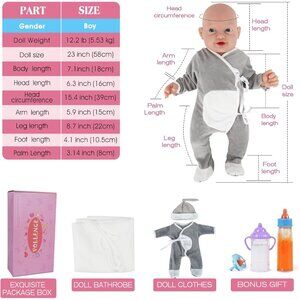 More real feelings : Full silicone baby doll touching feeling is like a real baby. Its hands and feet are so soft. It feels like a real baby in your arms, it is suitable for baby or little kid. Your kid will have a good time with it