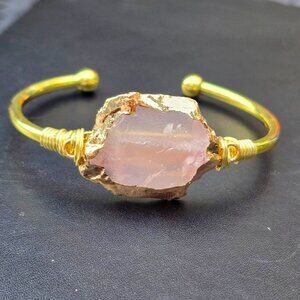 A blush of compassion wrapped in gold—this Rose Quartz cuff radiates softness, healing & heart‑centered grace.