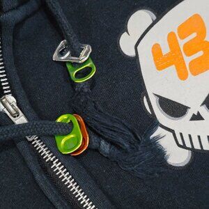 The #43 skull emblem adds motorsport edge, while the ribbed cuffs & hooded fit keep it comfortable for everyday wear.