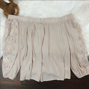 2/$30 ASTR The Label Off Shoulder Lace Embroidered Gauzy Relaxed Blouse Top