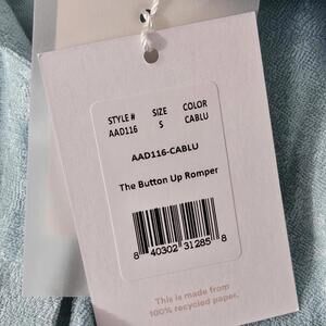 Step into relaxed, coastal vibes with this Andie Terry Button-Up Romper in the signature Cablu color, Size S. Made from ultra-soft terry cloth, this romper features a button-up front, collared neckline, and a laid-back fit perfect for beach days, poolside lounging, or casual summer outings. The cool blue Cablu tone adds a refreshing pop to your warm-weather wardrobe.