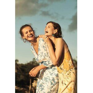 2/$30 Anthropologie One September Paradiso Halter Dress Gold Koi XL #A0452 TRB3