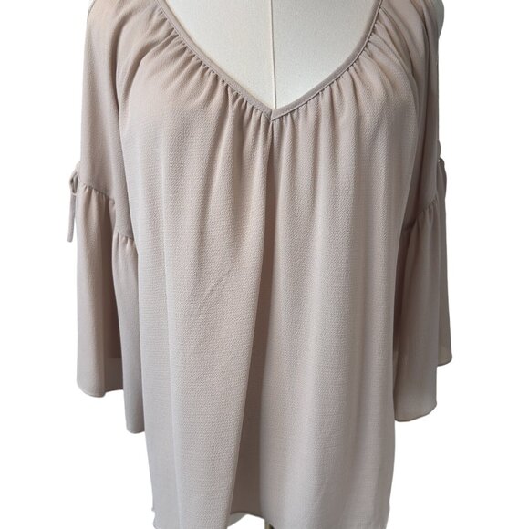 2/$30 Becca M Taupe Beige Textured 3/4 Sleeve Top Tie Detail Polyester