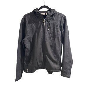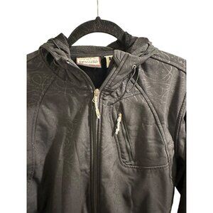 π 2/$30 π Black Hooded Soft Shell Jacket Abstract Pattern & Zipper Pockets