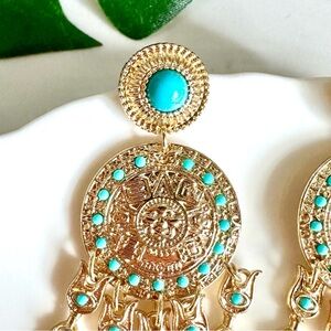 2/$30🌵 Blue Stone Gold Pharoah Egyptian Earrings Tribal Jewelry Gift Boho NEW