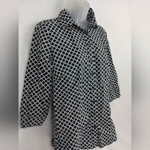 2/$30 CHADWICKS Stylish Black and White Damask Pattern Shirt (#1,328)