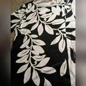 Add this scoop neck black and white unique top with half sleeves to you wardrobe. Perfect for a formal occasion. Very soft material. Pattern almost looks like a tree. Very unique!