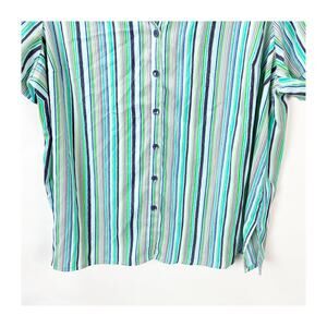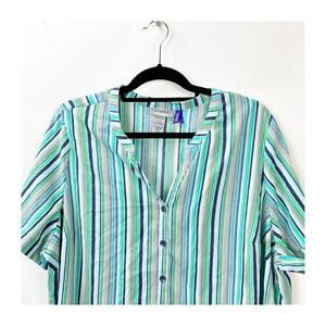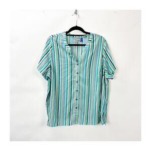 2/$30 Catherines Plus Petite 1X Striped Button‑Front Blouse Women Green Blue